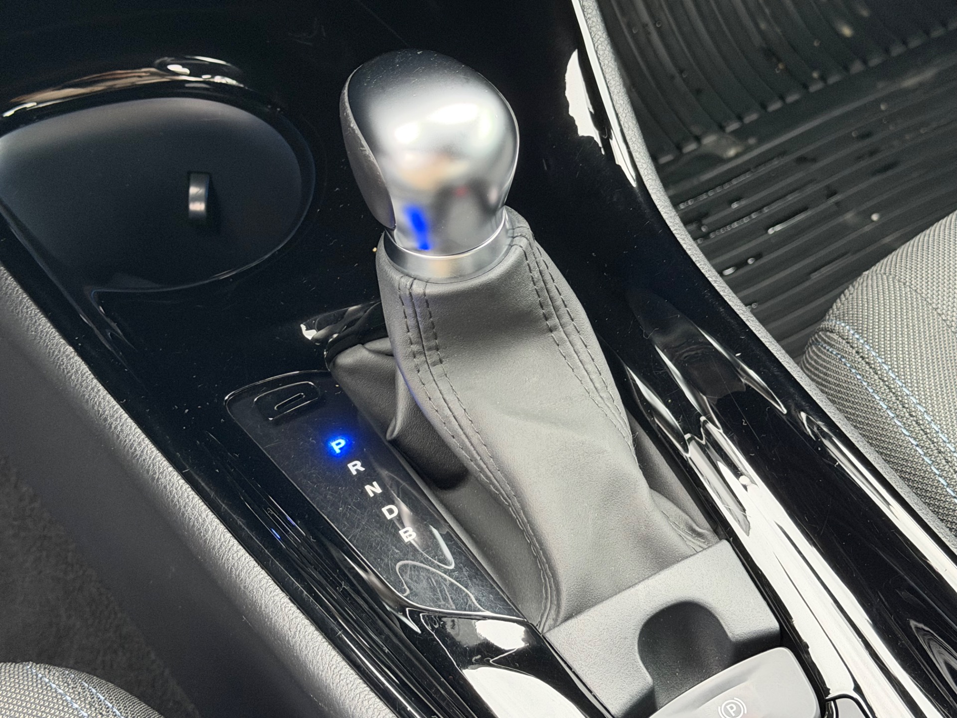 • Detalhes em azul com costuras de bancos à mesma cor